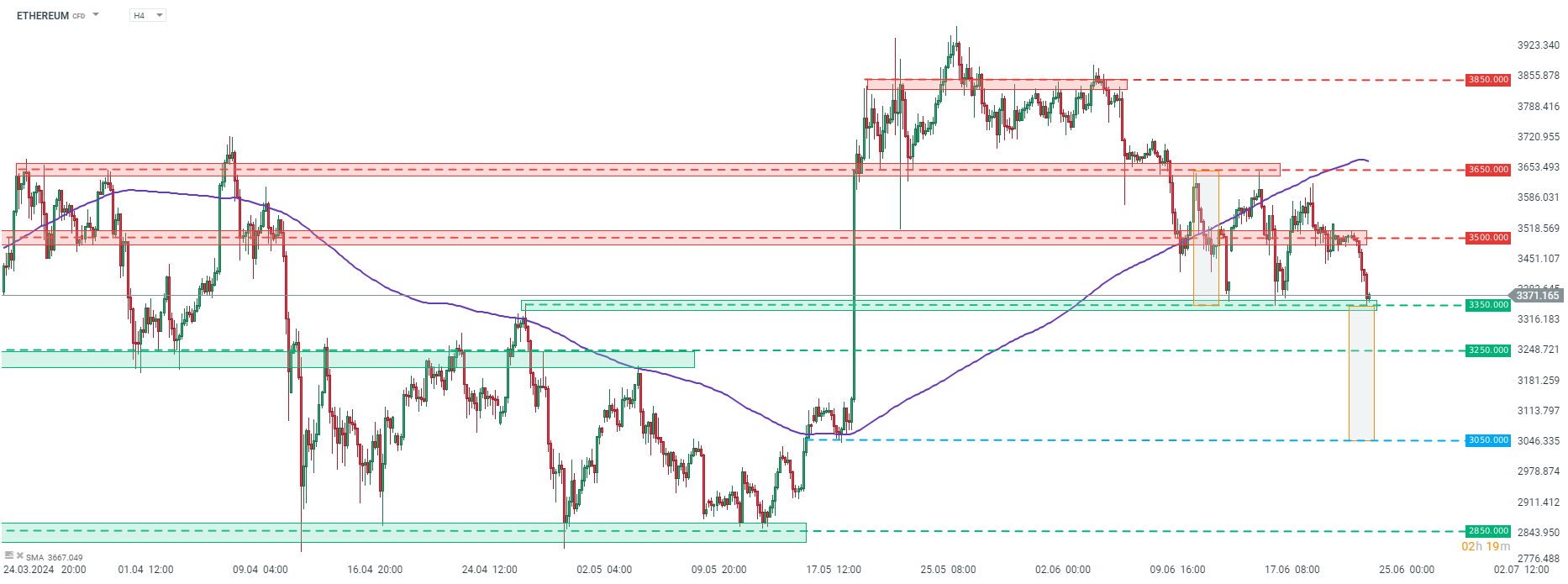Nhìn vào biểu đồ ETHEREUM khung H4, có thể thấy giá đã giảm mạnh trong phiên hôm nay và đã chạm đến vùng hỗ trợ quan trọng ngắn hạn ở khu vực 3,350 USD được đánh dấu bởi các phản ứng giá trước đó và vùng hỗ trợ của khu vực sideway ngắn hạn. Nếu giá vượt qua mức này, điều này có nghĩa là giá sẽ giảm xuống mức thấp nhất trong một tháng và mở đường cho đồng tiền điện tử này giảm xuống khu vực 3,050 USD. Mặt khác, nếu phe mua lấy lại quyền kiểm soát trên thị trường và bảo vệ thành công mức hỗ trợ 3,350 USD, thì đồng tiền điện tử này có thể sẽ phục hồi trở lại quanh mức 3,650 USD - vùng kháng cự của phạm vi sideway. Tuy nhiên, nếu muốn đạt mức 3650 USD thì Ethereum cần phải vượt qua mức 3,500 USD, mức này cũng đã xảy ra một số phản ứng trước đó..