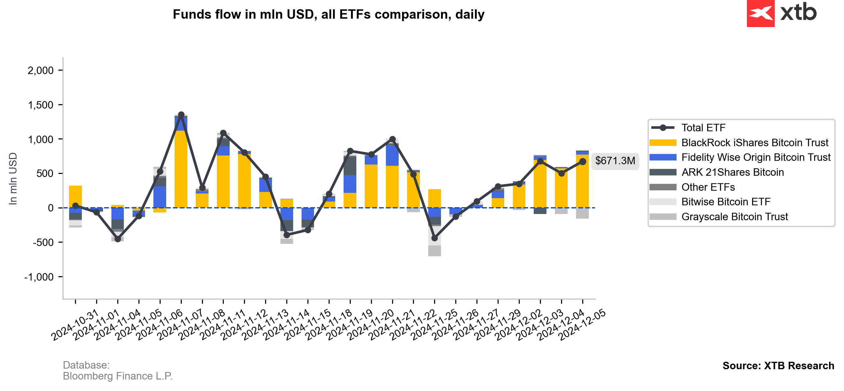 Báo cáo thị trường lao động Hoa Kỳ cho thấy sự phục hồi mạnh mẽ trong tháng 11 (227 nghìn việc làm mới; dự báo: 202 nghìn; trước đó: 36 nghìn, điều chỉnh từ mức 12 nghìn) và tỷ lệ thất nghiệp tăng 0,1% lên 4,2%. Tăng trưởng tiền lương cao hơn một chút trên cả dữ liệu so với cùng kỳ và so với tháng trước. Ngoài ra, tâm lý người tiêu dùng của đại học Michigan mạnh hơn dự kiến, với kỳ vọng lạm phát cao hơn một chút