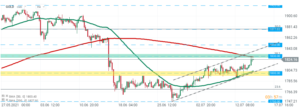 Vàng đã được giao dịch trong một kênh tăng dần gần đây. Hiện tại giá đang kiểm định mức kháng cự mạnh tại $ 1830,00/oz, trùng với 50 SMA (đường màu xanh lá cây), 200 SMA (đường màu đỏ) và mức Fibo 38,2 của làn sóng giảm bắt đầu vào tháng 8 năm 2020. Nếu sự phá vỡ cao hơn xảy ra, thì mục tiêu tiếp theo đối với bò đực là khoảng $ 1850,00/oz. Mặt khác, nếu người bán cố gắng giành lại quyền kiểm soát, thì một xung lực giảm khác hướng tới hỗ trợ ở mức $ 1800,00/oz có thể xảy ra. Nguồn: xStation5