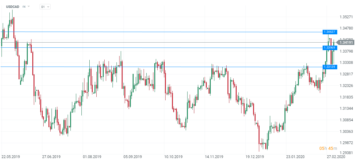 USD/CAD hiện đang giao dịch cao hơn khi vượt qua ngưỡng kháng cự 1.3396. Trong bối cảnh tăng nhanh này, cặp tiền tệ dường như đã đạt đến mức cao gần đây ở mức 1.3463. Nguồn: xStation5