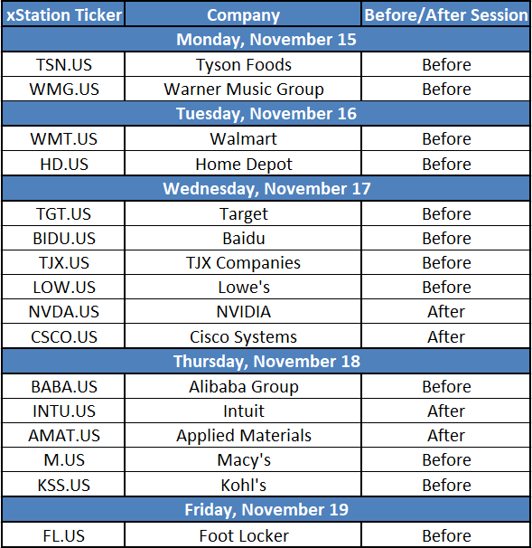 3 thành viên của chỉ số Dow Jones sẽ báo cáo trong tuần này - Home Depot, Walmart và Cisco Systems. Ngoài ra, các nhà đầu tư cũng sẽ được cung cấp báo cáo từ một số công ty khác có vốn hóa thị trường lớn hơn 100 tỷ USD.