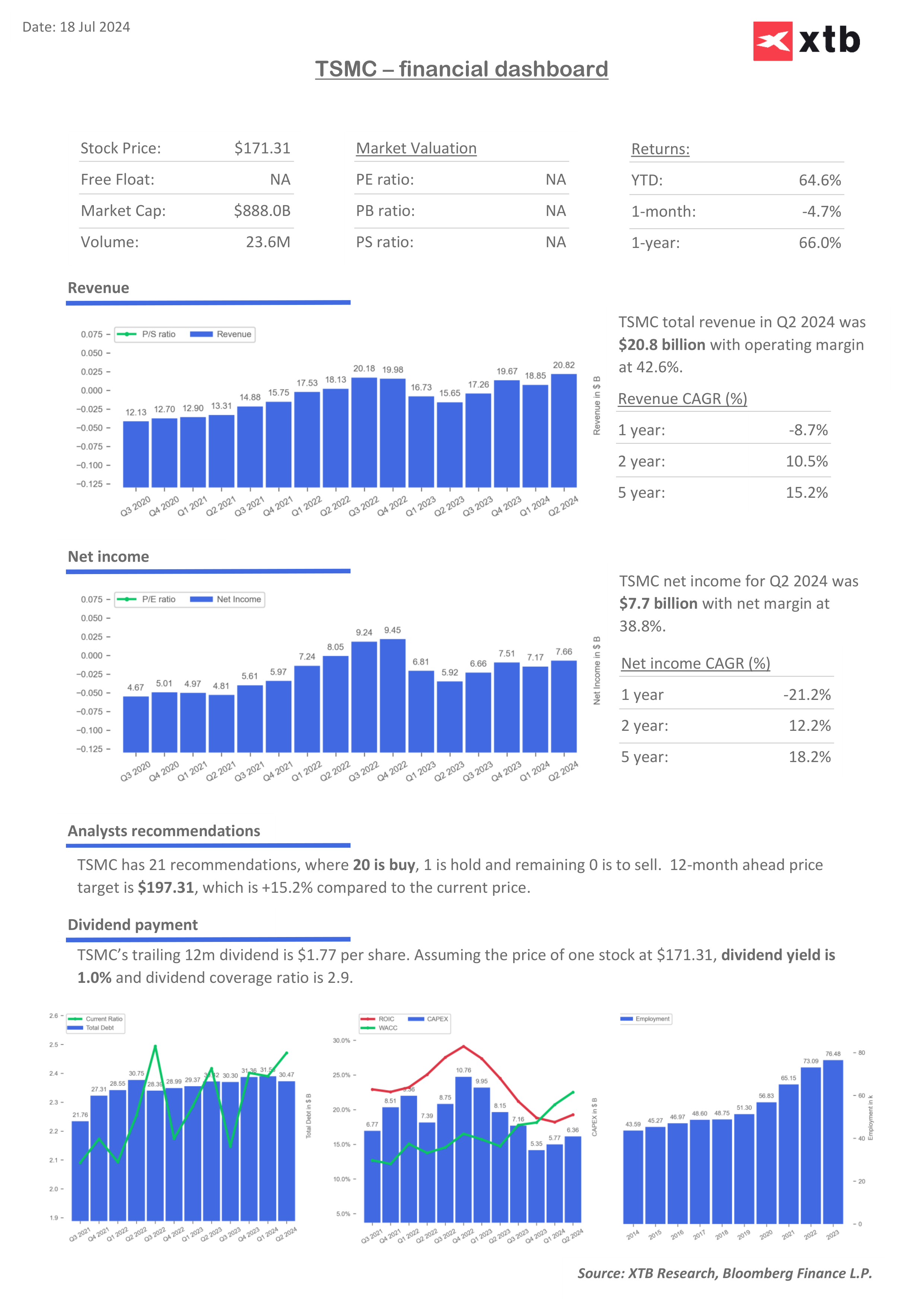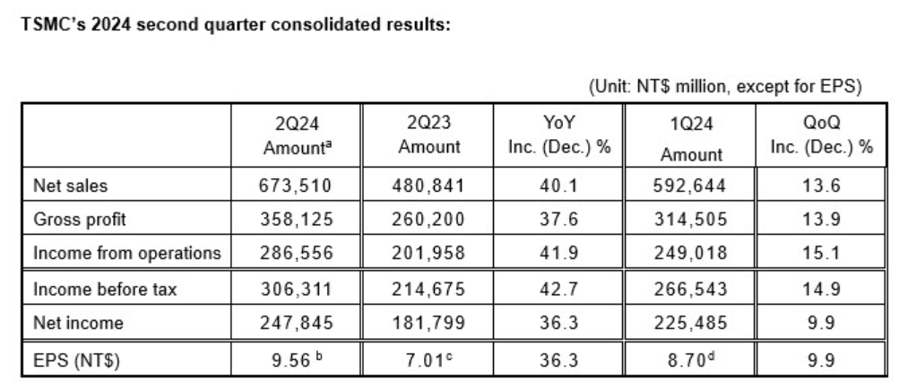 Yesterday, Donald Trump also conveyed that Taiwan will have to pay for its own protection because the U.S. interest is no different from an insurance company, and so far the island'gives nothing to America. As a result, this opened the door to speculation about the potential impact of such comments on the closely held U.S. business of TSMC, Asia's largest company and one of the world's largest, which today reported second-quarter results for the year. Earnings rose 36% year-on-year, and the business momentum leads investors to believe that TSMC is among the beneficiaries of the AI trend.