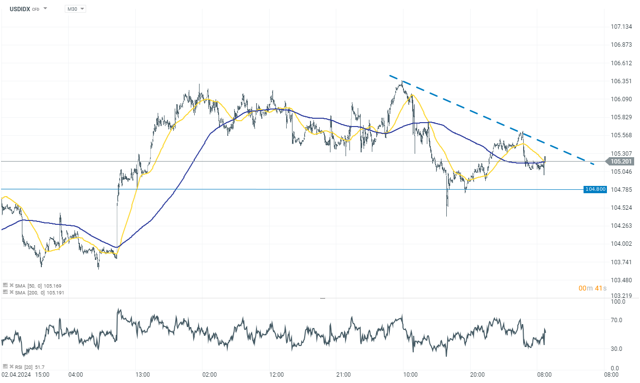 The tone of the FOMC members' remarks is rather hawkish, reflecting the Fed's precautionary stance. Interestingly, the bankers focused mainly on inflation data, and the issue of recent weaker labor market data was not addressed. Therefore, in this context, the CPI data, which are scheduled to be published next week, will be of much greater importance. Today, the US dollar index (USDIDX) gained 0.10%. However, this movement is still within a consolidation channel below the downtrend line.