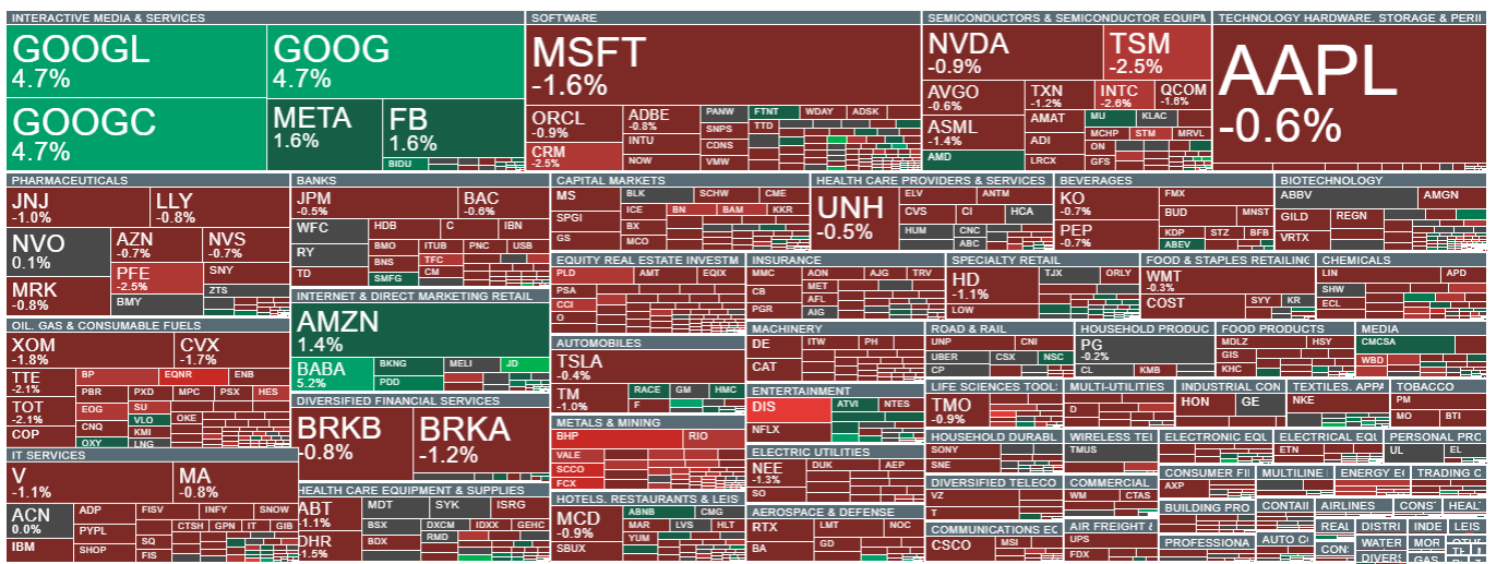 - Alphabet's (GOOGL.US) stocks are gaining nearly 5% due to product updates in AI following the developers' conference.