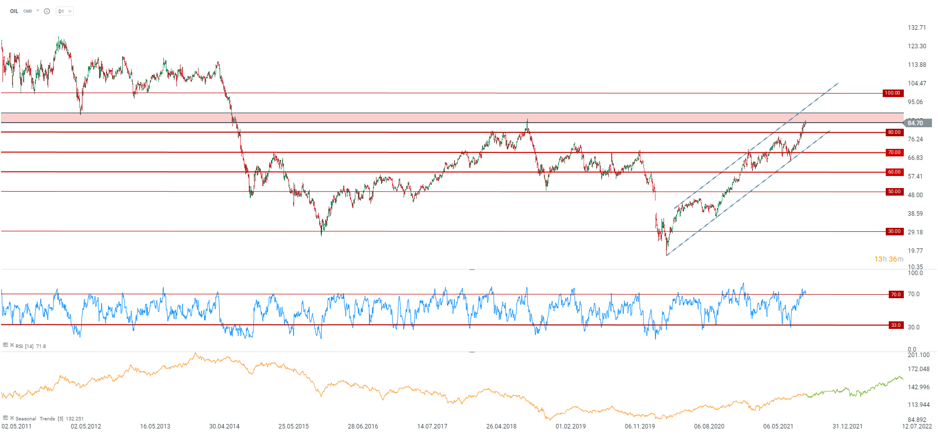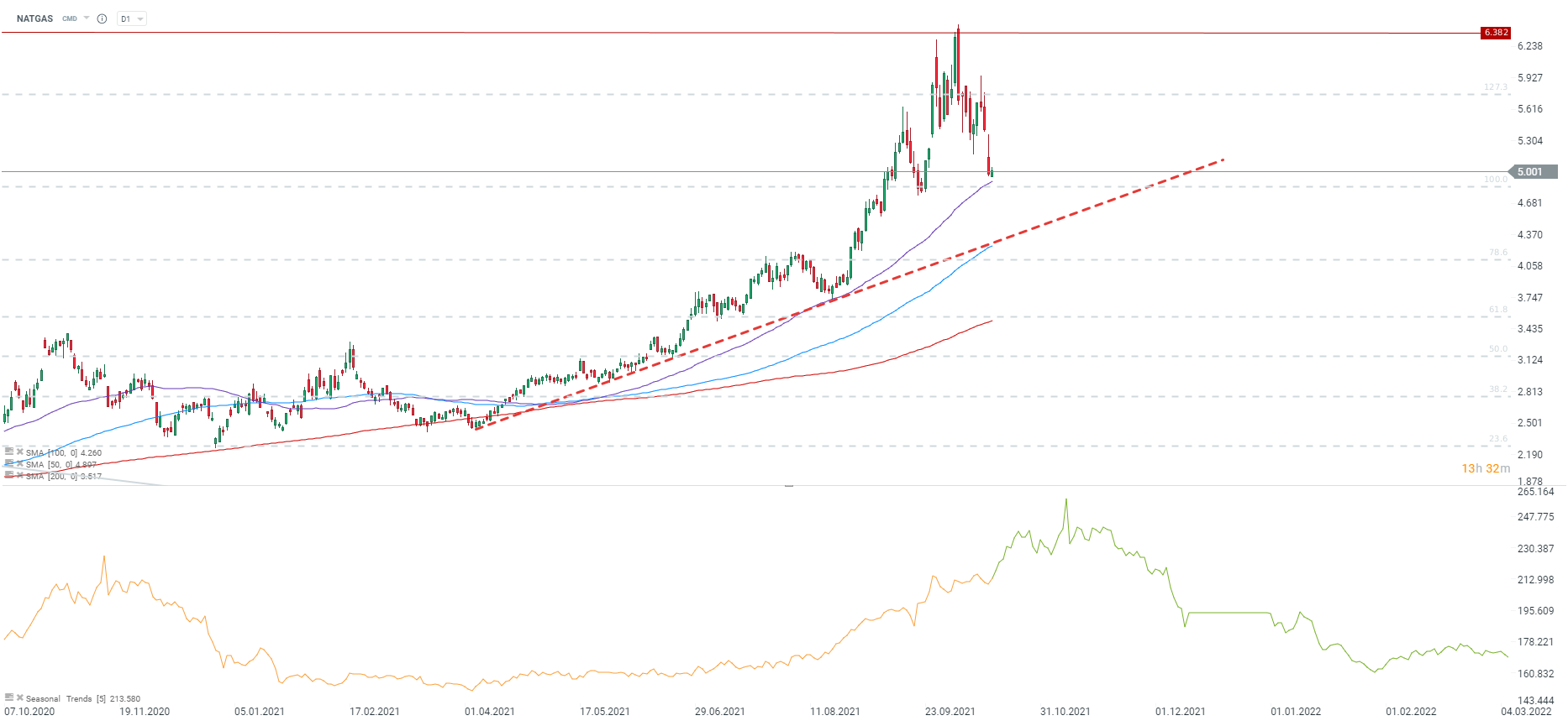 Similar upward impulses on the oil market lasted at least 4-6 months in the previous years. Current impulse has been in play for around 2-and-a-half months, suggesting that there is still room for prices to move higher. Potential for good weather in Europe and around the world remains a key risk as it may lower oil demand compared to natural gas demand. Source: xStation5