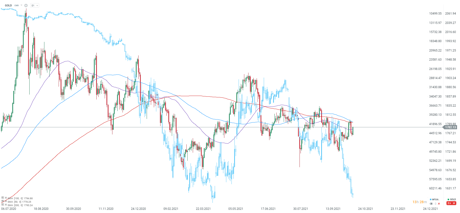 Bitcoin suggests that gold should be trading at lower levels. Source: xStation5