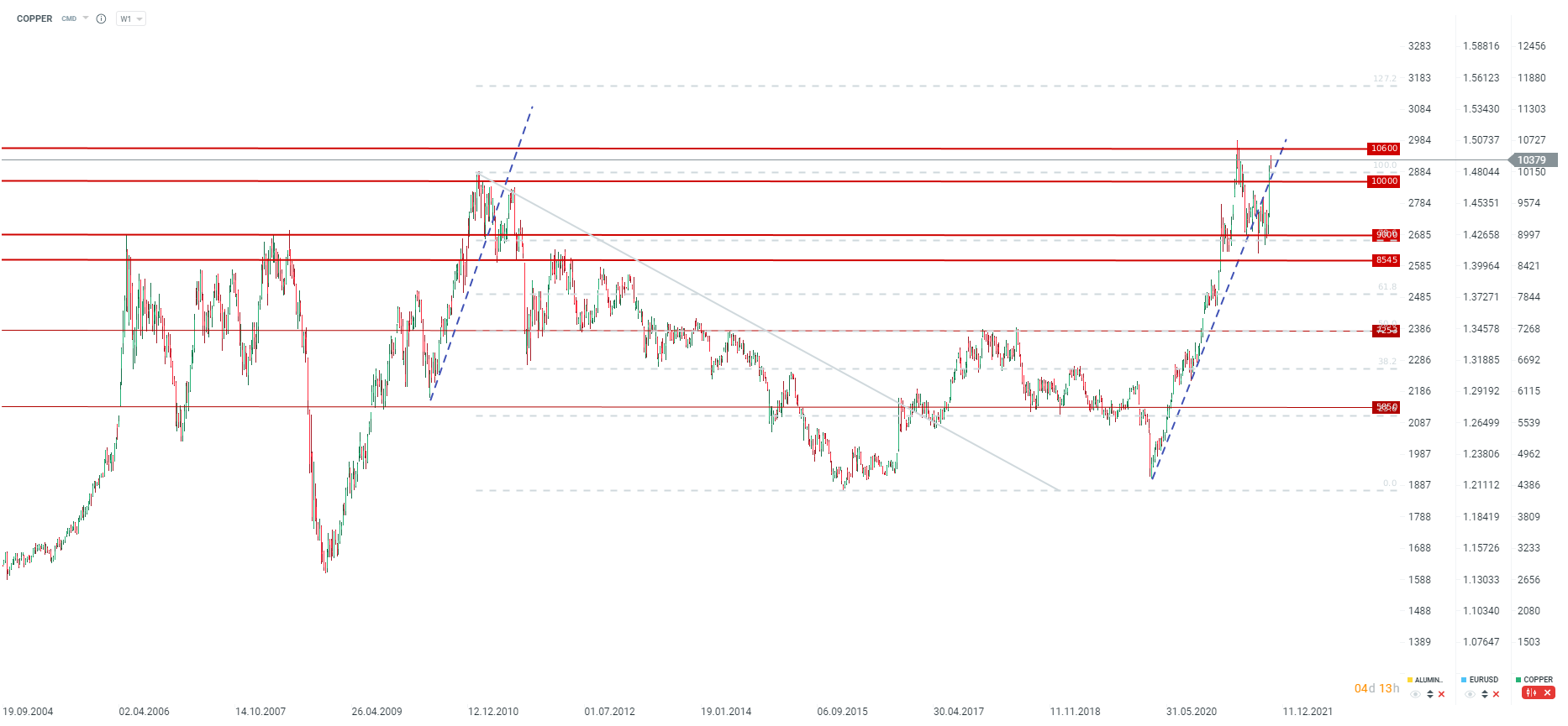 Copper trades near all-time highs. Should we see a break into uncharted waters, the next potential resistance to watch can be found near $11,750 - the 127.2% exterior retracement. Source: xStation5