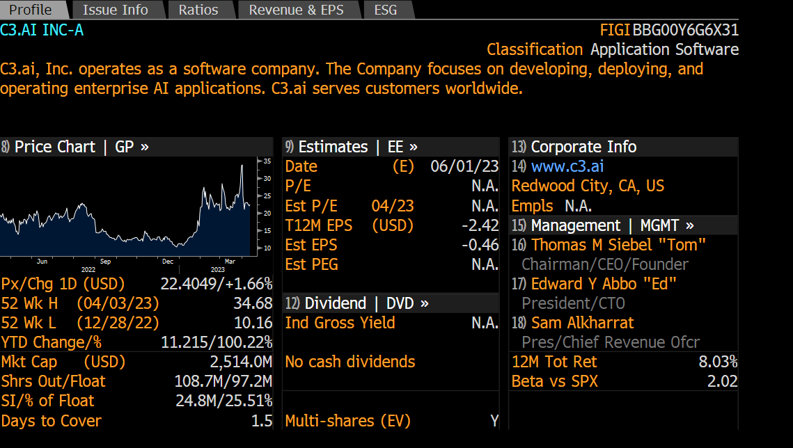 Fundamental indicators of the company C3.ai. Source: MarketChameleon