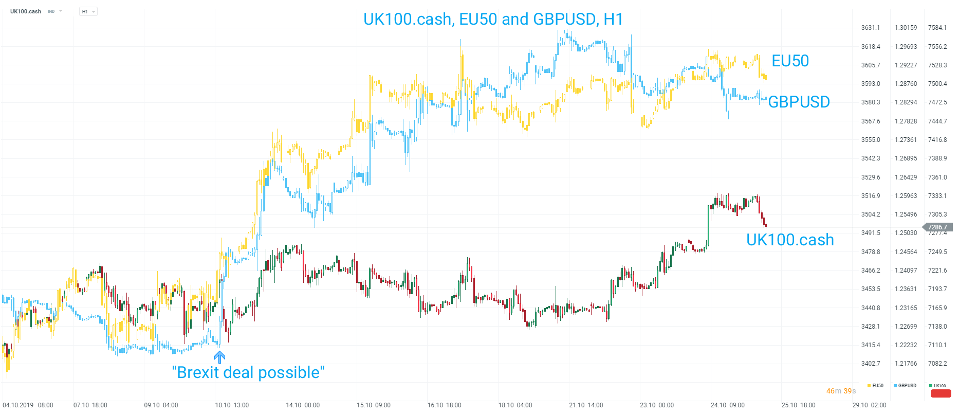 Since the pound began to rally on comments from Irish Taoiseach Varadkar that a Brexit deal was possible there’s been a notable divergence open up between Eurostoxx and the FTSE - with the former outstripping the latter in its move higher. Source: xStation