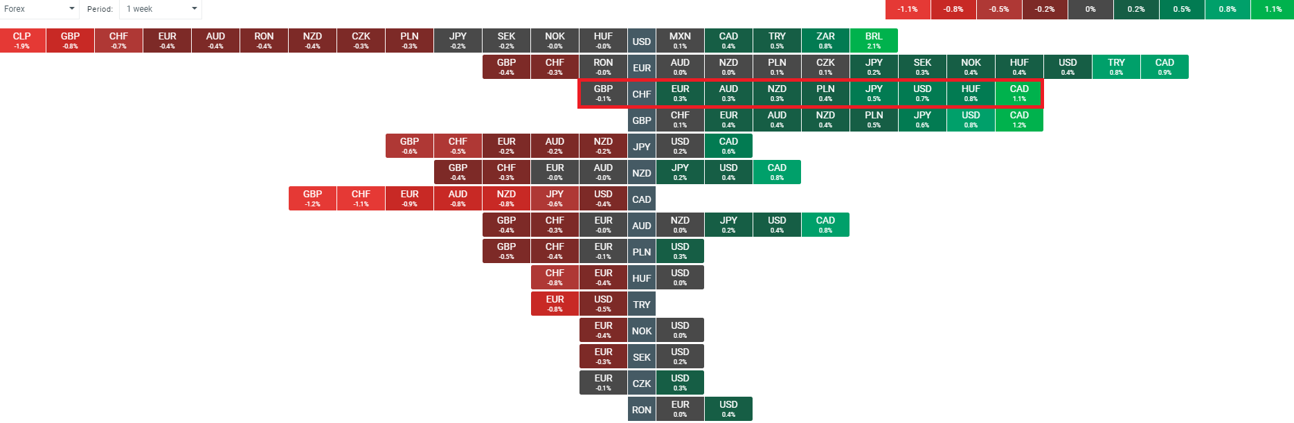The pound is losing ground on the week after a strong run higher of late. The largest declines can be seen against the Canadian dollar which has performed well after Monday’s election outcome. Source: xStation