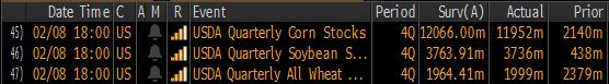 The quarterly data (Q4) were mixed though. The release was positive for soybean and corn prices and less upbeat in case of wheat. Source: Bloomberg