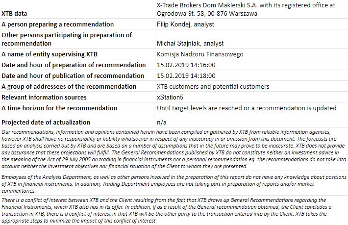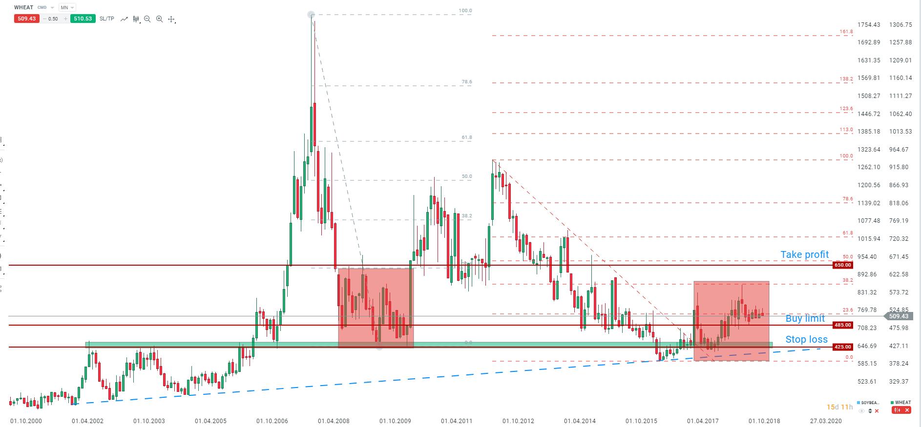 We see quite a high chance of weather problems to occur once again this year, especially in Europe and to smaller degree in the United States. Additionally, data concerning planned sowing, that is scheduled for release in March, is expected to show smaller area being planned to be sown this season. Those two factors should exert upward pressure on the wheat prices. Taking a look at seasonal patterns one can see that wheat prices often experience rally in the May-June period, what could bring prices as high as to 650 cents per bushel this year. This level can be seen as potential target for the pending buy order at 485 cents per bushel handle with stop loss at 425 cents per bushel.
