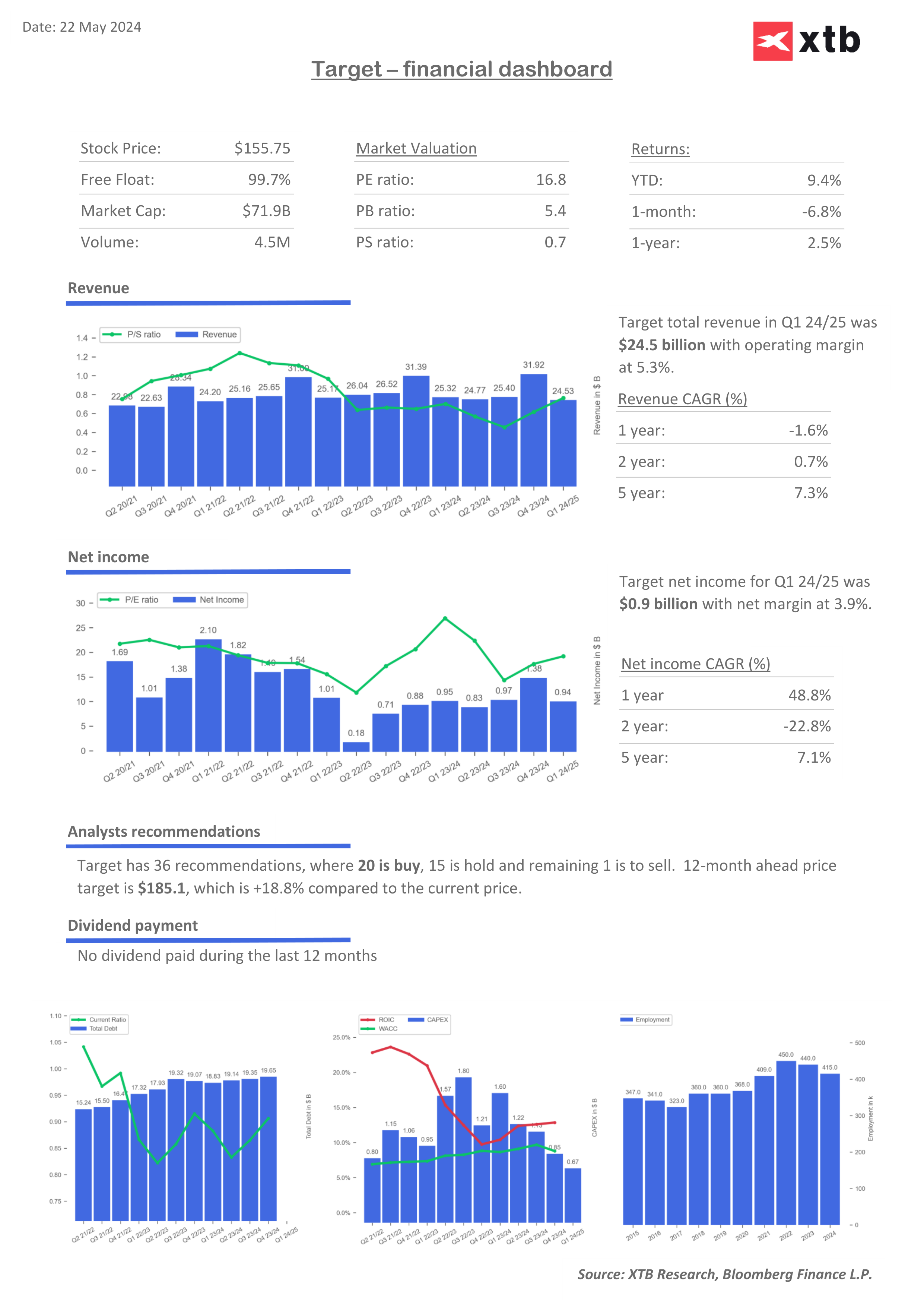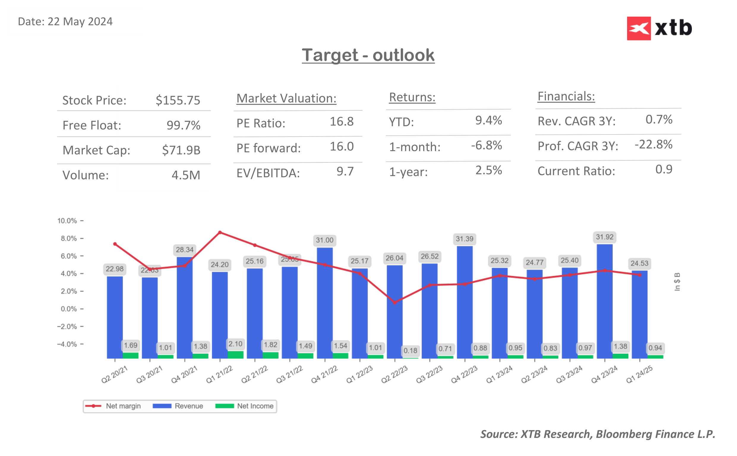 Shares of Target (TGT.US) are losing nearly 7% before the opening of the session following the release of results. Source: xStation 5
