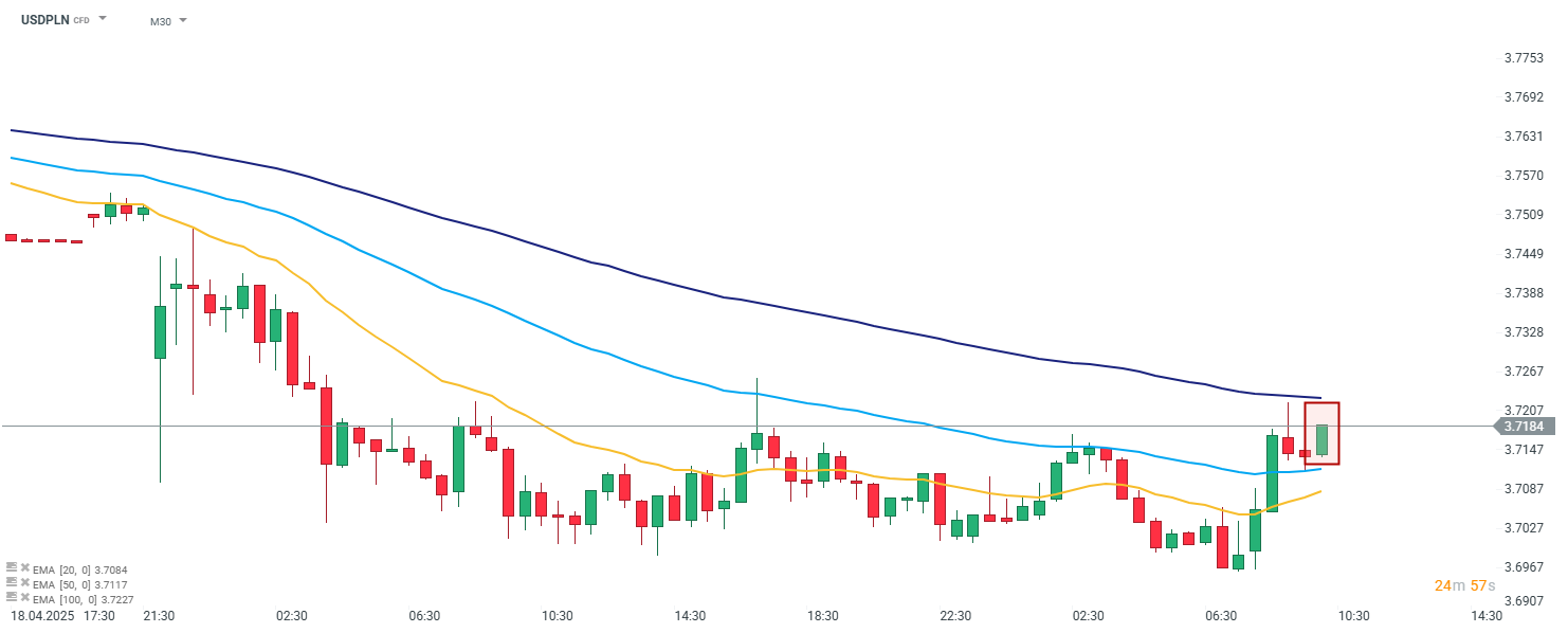 Dane z Polski wskazują na kontynuację spadków cen dóbr produkcyjnych, które w marcu spadły o -1,1% (zgodnie z przewidywaniami). W przypadku wzrostu wynagrodzeń (+7,7%) marzec okazał się czwartym miesiącem z rzędu spadku dynamiki, co z perspektywy NBP może umacniać scenariusz obniżki stóp procentowych. Prezes Glapiński często podkreślał, że utrzymująca się wysoka dynamika płac stanowi jedno z czołowych wyzwań w kształtowaniu się presji inflacyjnej.