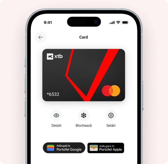 Ușurează-ți plățile de zi cu zi și obține acces mai rapid la banii tăi cu XTB - trebuie doar să adaugi cardul în Apple Pay și Google Pay și să începi să plătești cu telefonul sau cu ceasul.