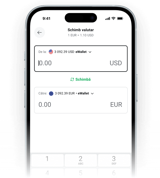 Schimbă valute instant, oricând ai nevoie. La această oferă se aplică limite zilnice de tranzacții și comisioane de conversie valutară. Pentru detalii complete, consultă lista de comisioane.