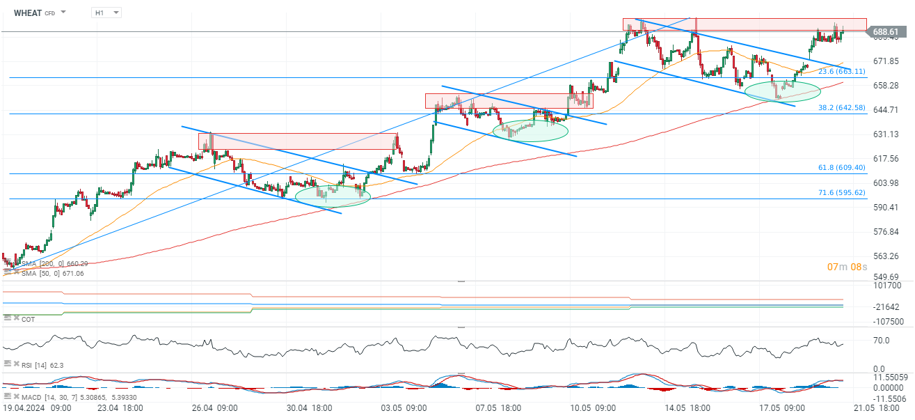 - Podľa prognóz by konečné zásoby pšenice mali klesnúť na najnižšiu úroveň za posledných deväť rokov. Spoločnosť Argus Media poukazuje na nedostatok zrážok na Ukrajine a v Rusku a májové mrazy v oboch krajinách ako na priamu príčinu cenového odrazu. V dôsledku toho kontrakty CBOT podporili nákupy špekulatívnych fondov, ako aj tých, ktorí si zabezpečujú dodávky.